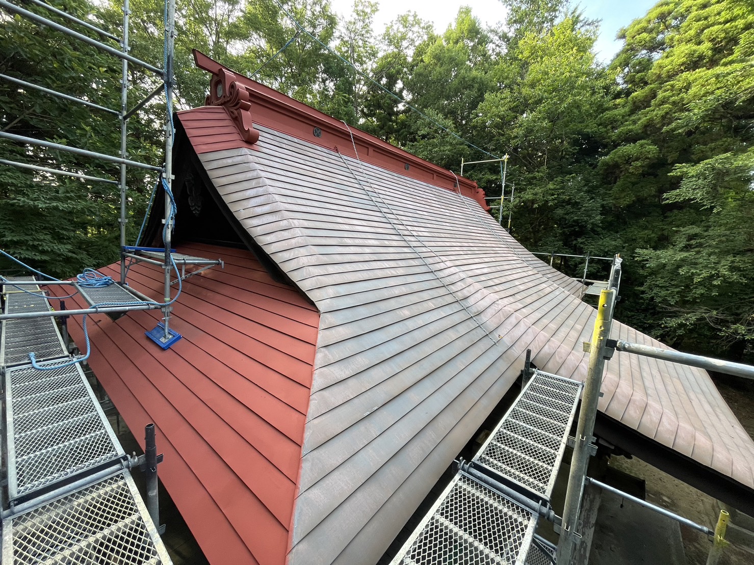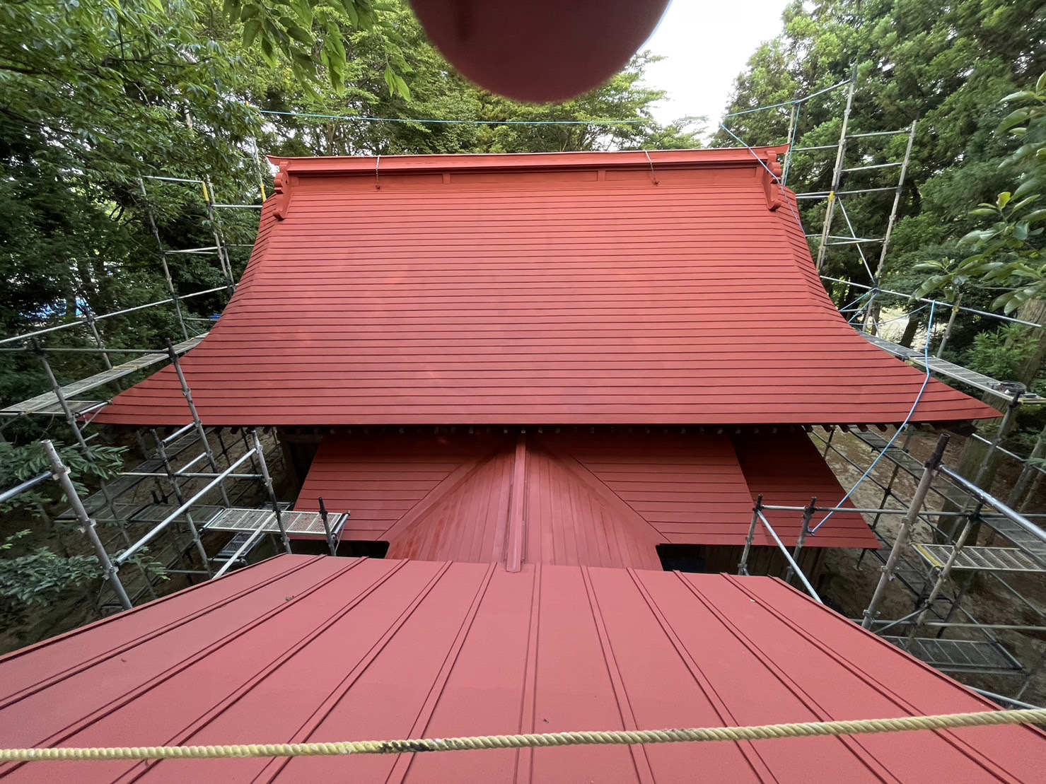 ご覧ください!茶色で神社の風情を崩さず存在感を出すことが出来ました!