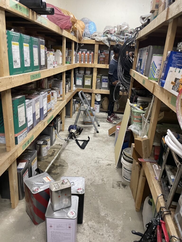 今日は道具の見直しや、塗料・資材の確認、使いやすいように棚の配置も整えて、