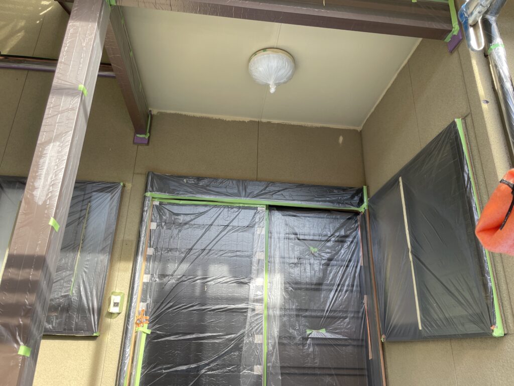 本日は、玄関の前にある軒天(のきてん)の塗装について少しお話しさせていただきます。