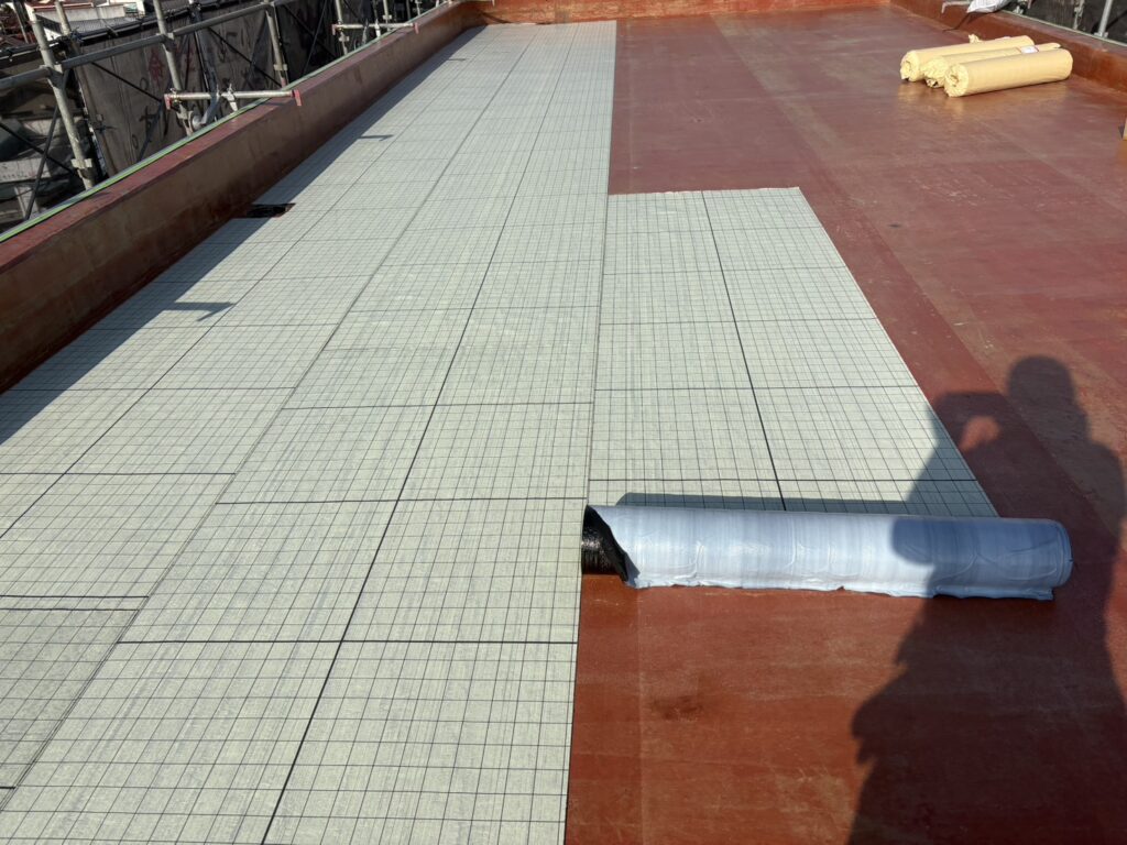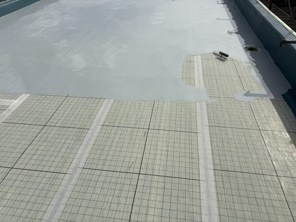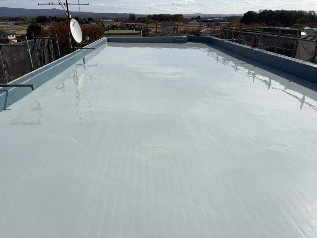 防水層もしっかり厚みを確保でき、雨水から建物を守るための大切な工程が無事に仕上がりました。