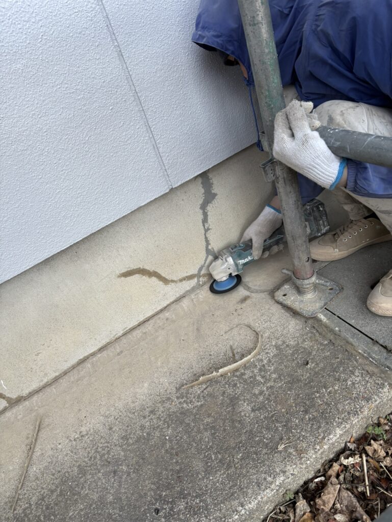 今回の基礎は地震によるクラック(ひび割れ)がひどく痛んでおりました。
