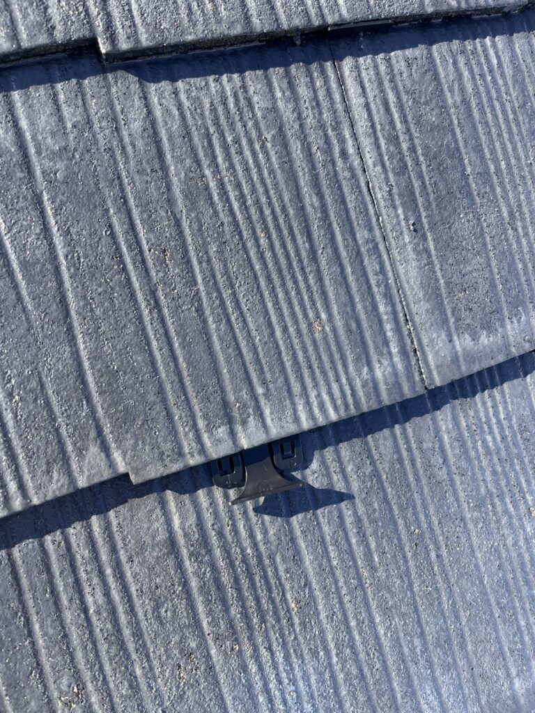 塗装する際に屋根材同士がくっつかないように「縁切り」ができる材料を設置していきます。(下写真)