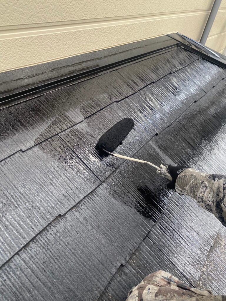 ・全体を高圧洗浄後、屋根の下塗りに関西ペイントダイナミックシーラーマイルドを塗布しました。