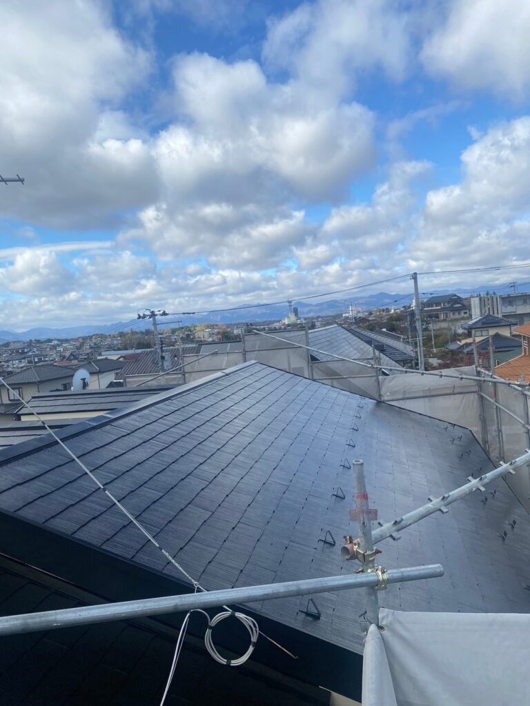 ・今回屋根に使用した材料は関西ペイントのダイナミックルーフMUKI ネオブラック(カタログ色)