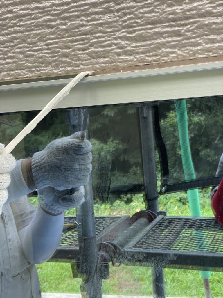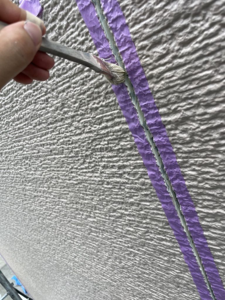 今回外壁材が無機塗料の為、シーリングの工程は外壁塗料の仕上げを行った後の、後打ちとさせて頂きました。
