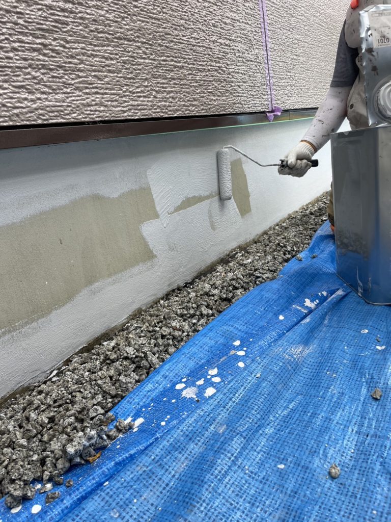 基礎塗装作業:中塗り・仕上げ塗り材にキクスイの基礎ガード KG-01を2回塗布いたしました。(下写真)