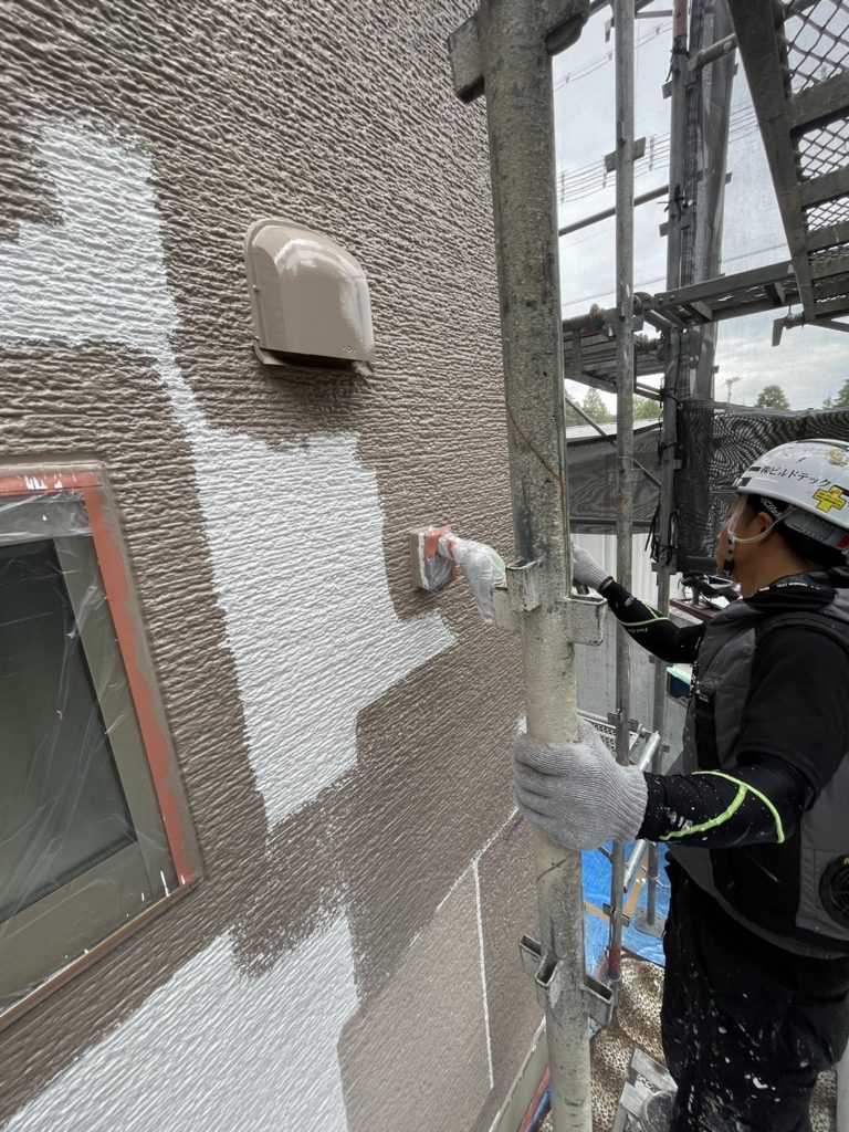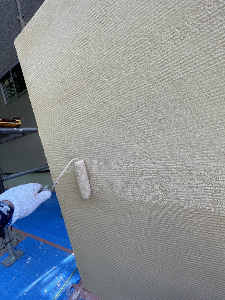 ・中塗り材にアトミクスのアトレーヌ水性トップH(グレー)を塗布いたしました。