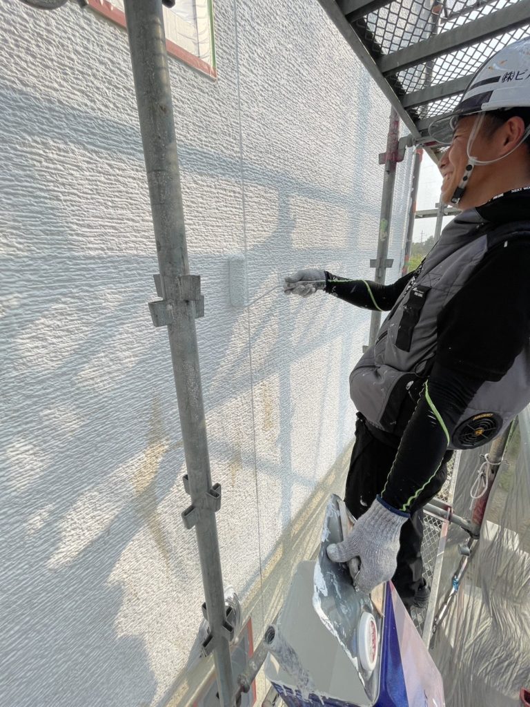 ・中塗り・仕上げ塗材にキクスイの基礎ガード(KG-01)カタログ色を使用しました。(下写真2枚)