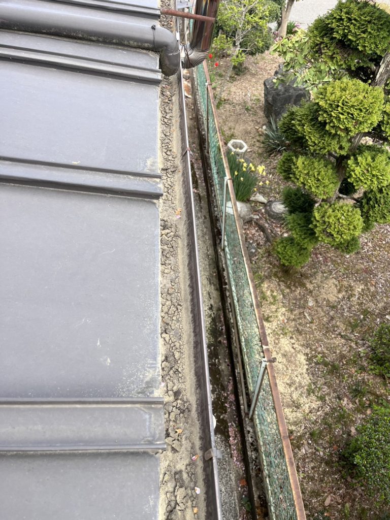 軒樋が長く勾配が取れていない為、上手に排水が行われておりませんでした。(下写真)