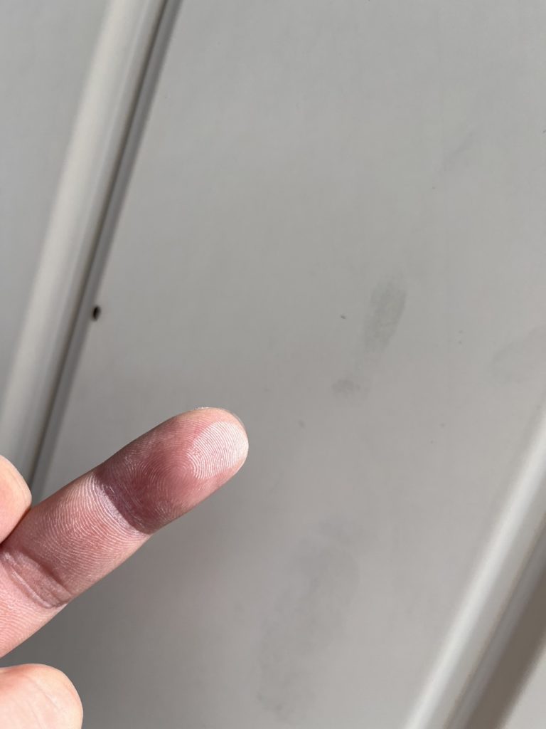 外壁もチョーキング(白亜化現象)が発生しており、ちょうど塗替えのタイミングでしたね。(下写真)