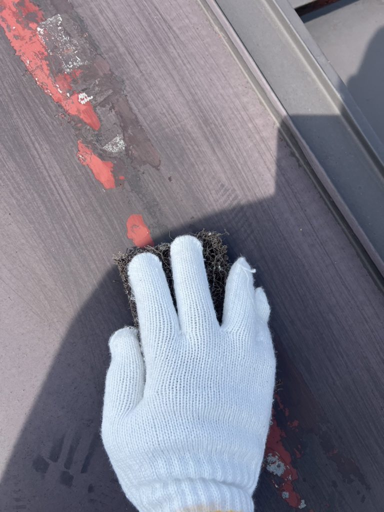 高圧洗浄で落としきれなかった既存塗膜については、マジックロン(手ケレン)にてしっかりと下地処理を行いました。(下写真2枚)