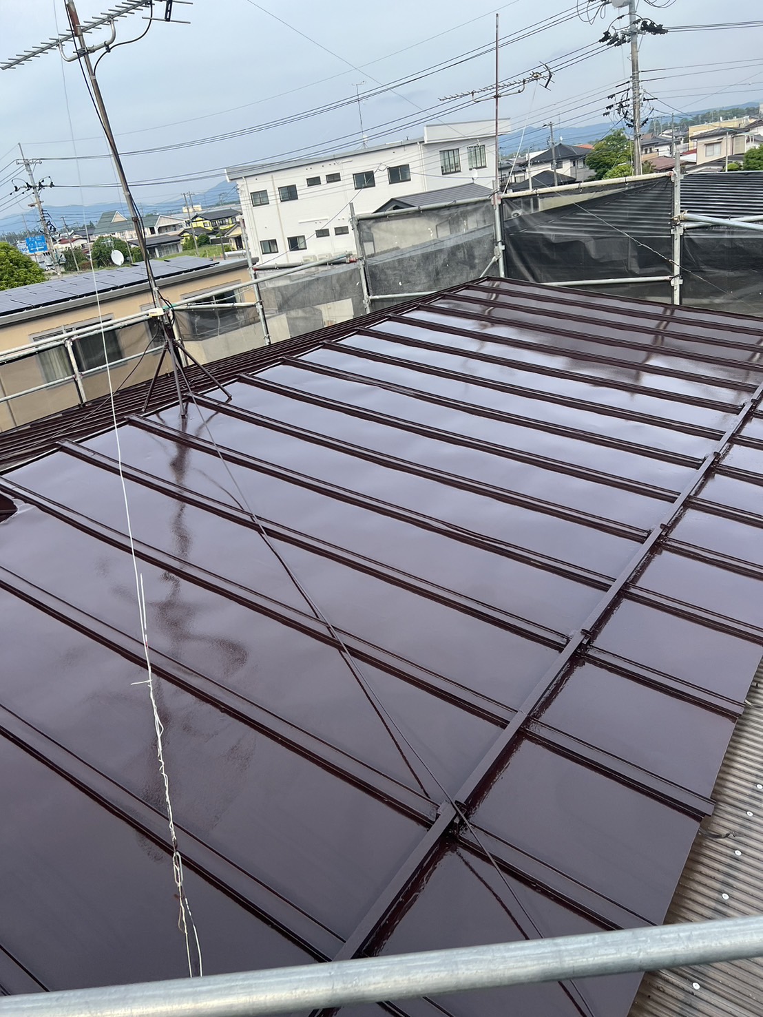 ご覧ください!既存塗膜がはがれていた屋根が見違えるほどキレイな仕上がりになりました!