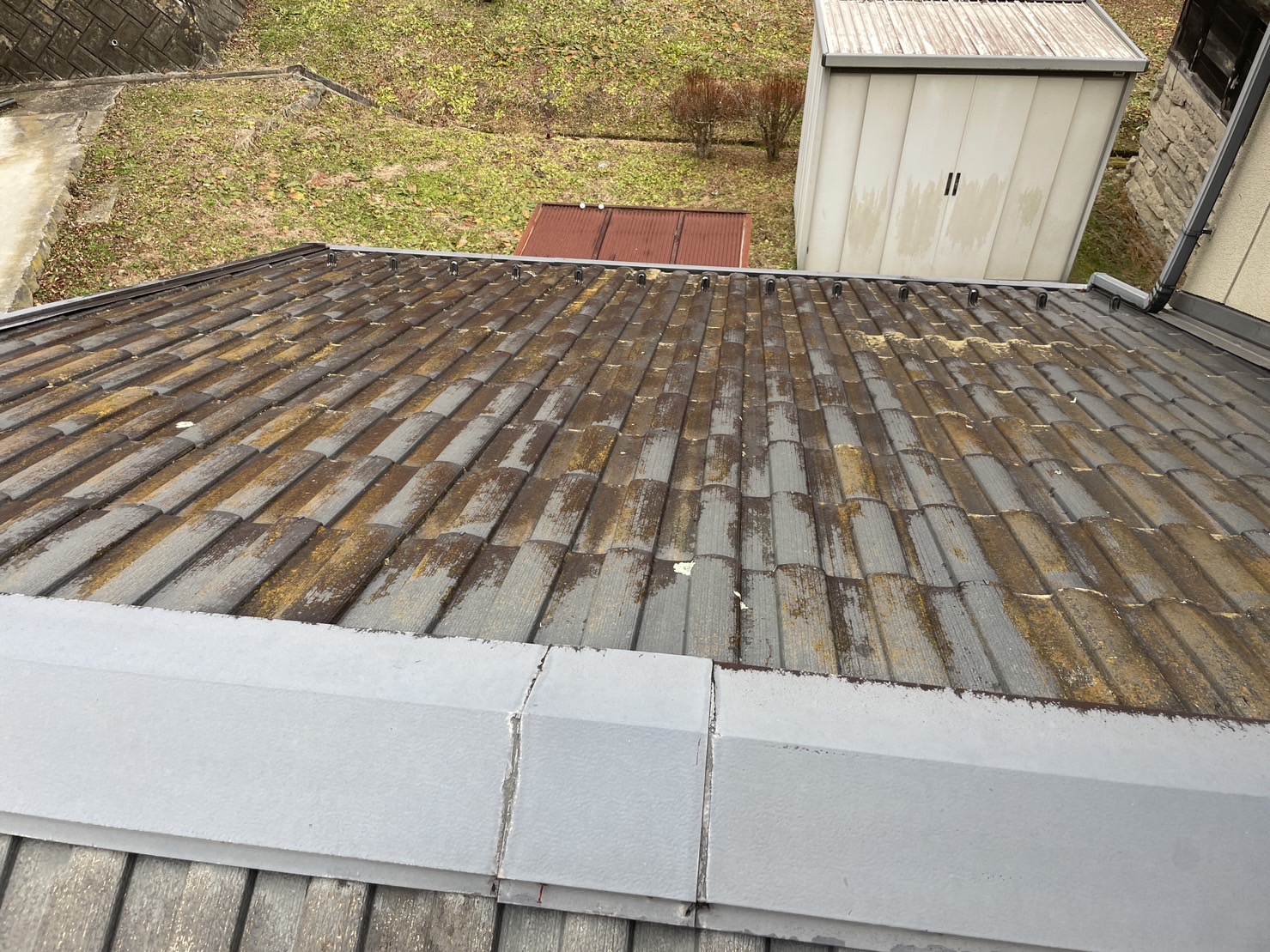 施工前の写真。北面全体がコケが発生しておりました。(下写真)