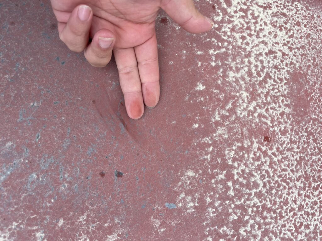塗料の硬化不良、色の透け・抜け等の施工不良はございませんでした。(下写真2枚)