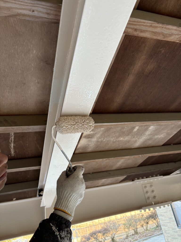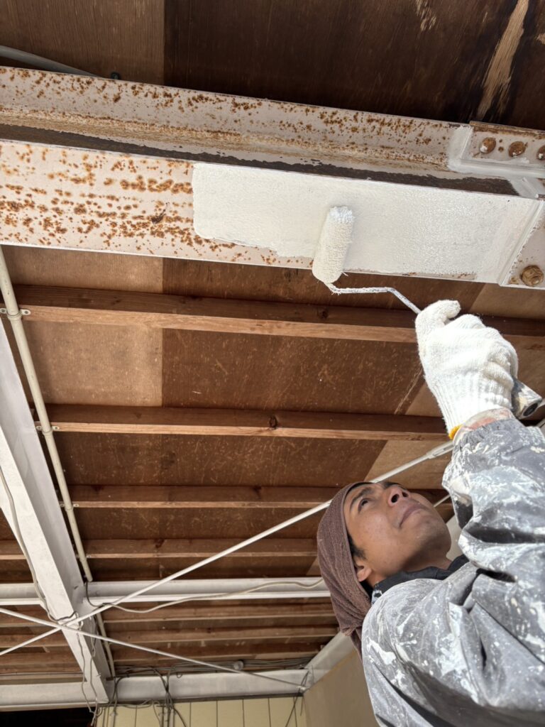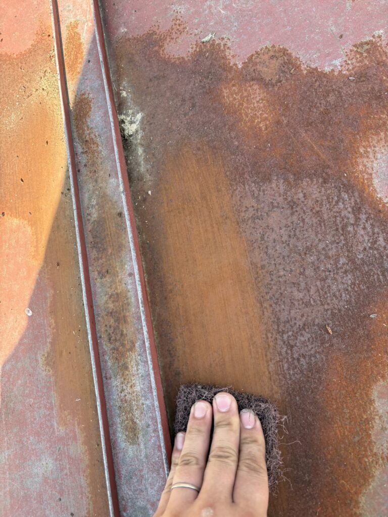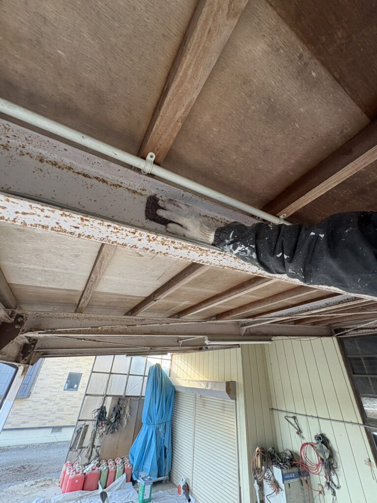 ・下屋根下の鉄部塗装になります。鉄部全体で専用工具を使用し汚れを落としていきました。