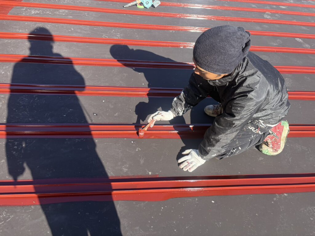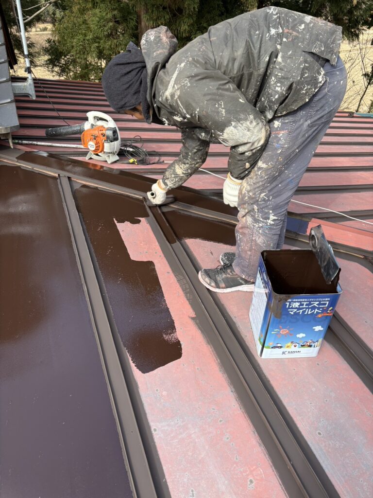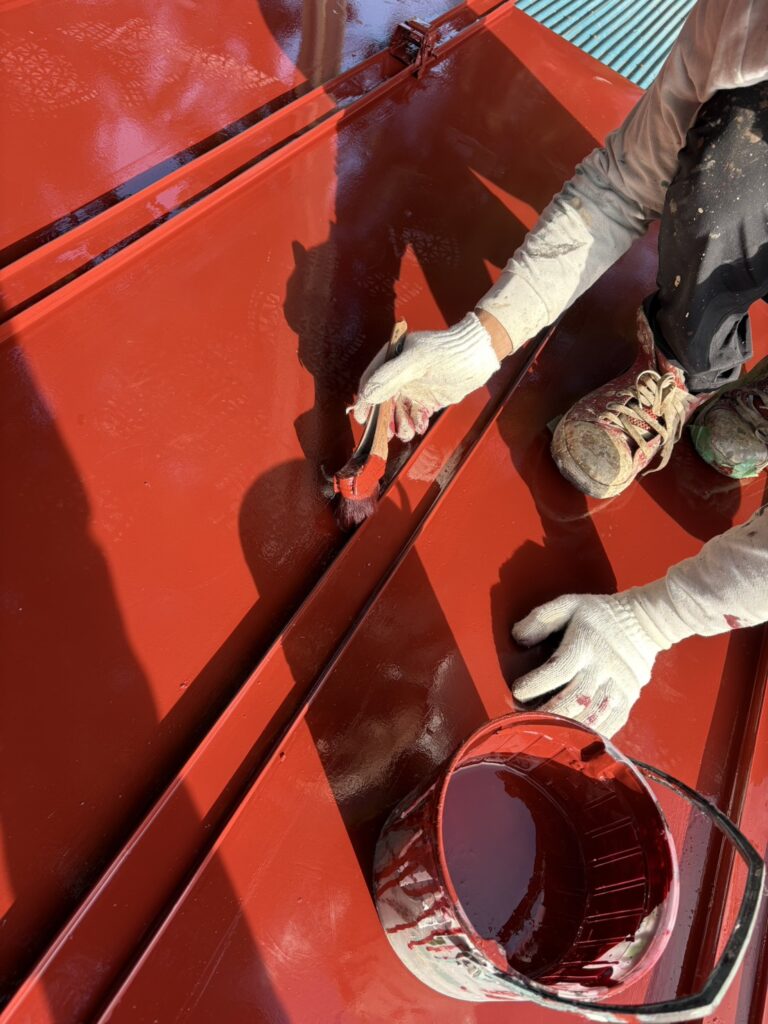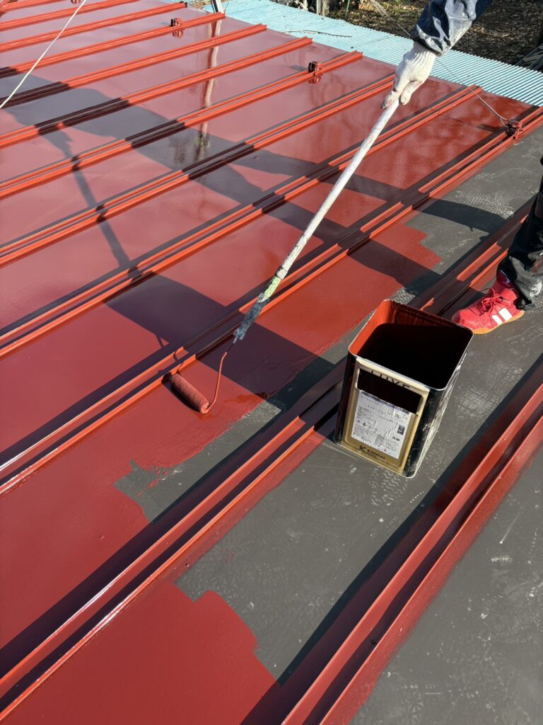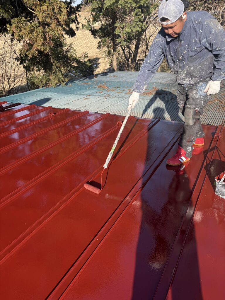 ・今回外壁中塗りに関西ペイント:ダイナミックMUKIルーフ ローヤルレッド色(カタログ色)