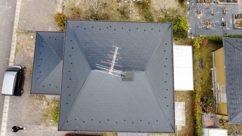 ・今回屋根に使用した材料は関西ペイントのダイナミックルーフMUKI ネオブラック(カタログ色)