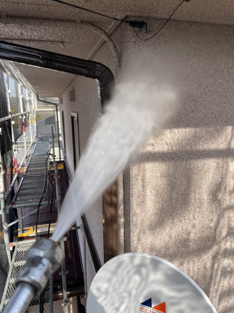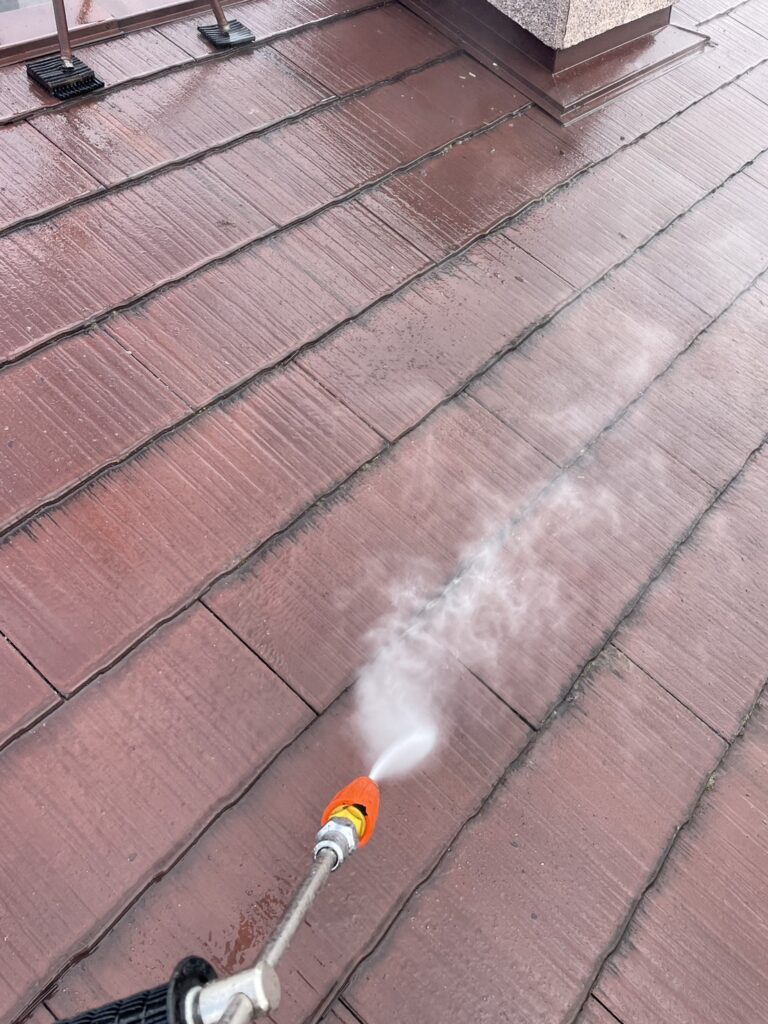 まず、塗装の前に高圧洗浄で、屋根全体の汚れをしっかり落としていきます!