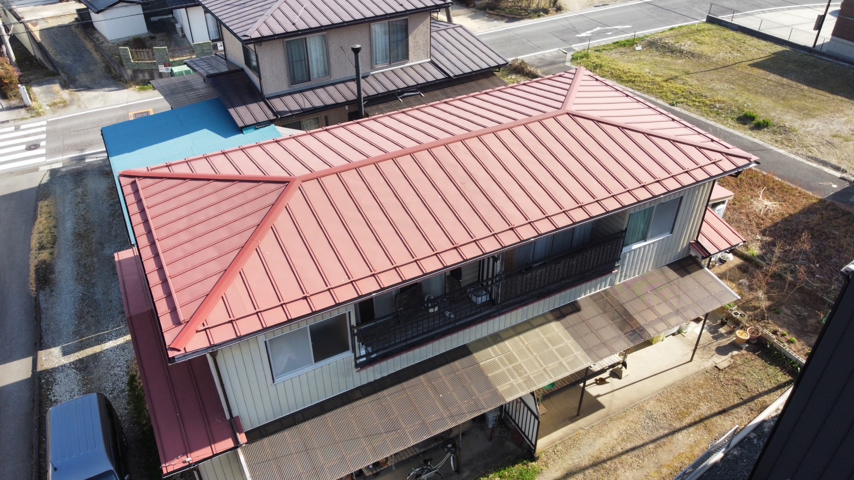 ・今回屋根に使用した材料は関西ペイントのダイナミックルーフ ローヤルレッド色(カタログ色)