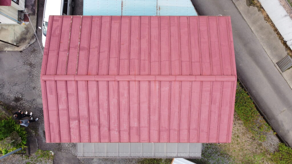 ・施工前の写真。母屋・小屋につきましてはサビが発生しており、色あせが見受けられました。