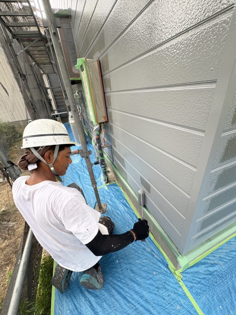 中塗り・仕上げ塗りに関西ペイントのセラマイルド ジプトーン色を塗布いたしました。