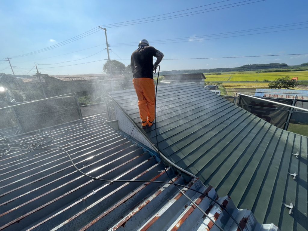 まず、塗装の前に高圧洗浄で、汚れをしっかり落としていきます!屋根のサビはあと1年放って置くと穴が開きそうでした。(下写真)