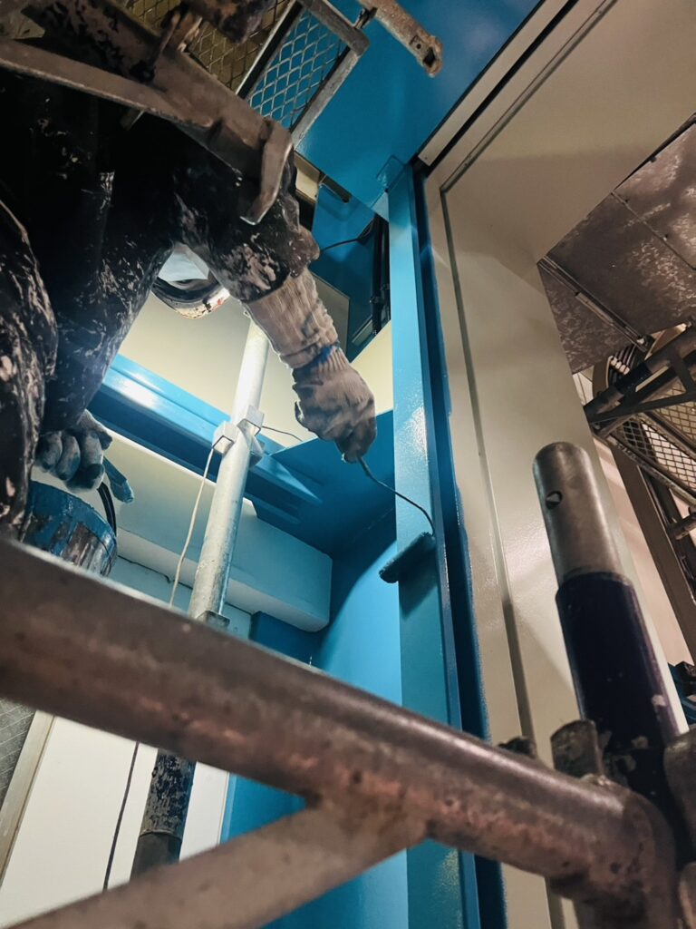 足場上はたくさんの配管が通っており、狭く塗装区分も細かくて大変でしたが職人一人ひとりがお客様に良い品質をと提供すると意識が現れておりました😆