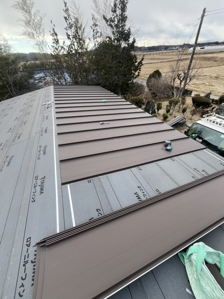 ルーフィング貼り後指定の材料を葺いていきます✨