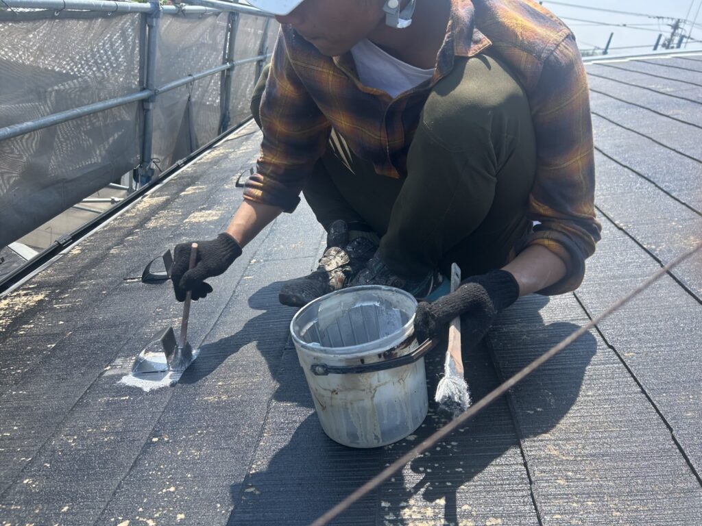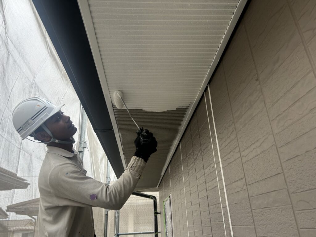 M様邸屋根中塗り作業&付帯部塗装(軒天)