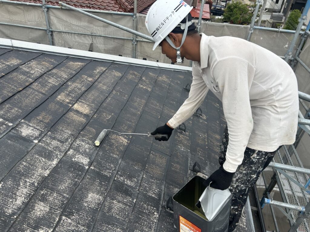 M様邸屋根下塗り作業