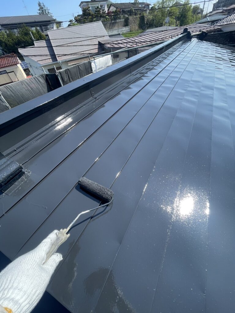 先日洗浄を終えて、本日は屋根の下塗り作業を行いました。下地の状況が悪かったので下塗りのプライマーを2回塗布いたしました👍