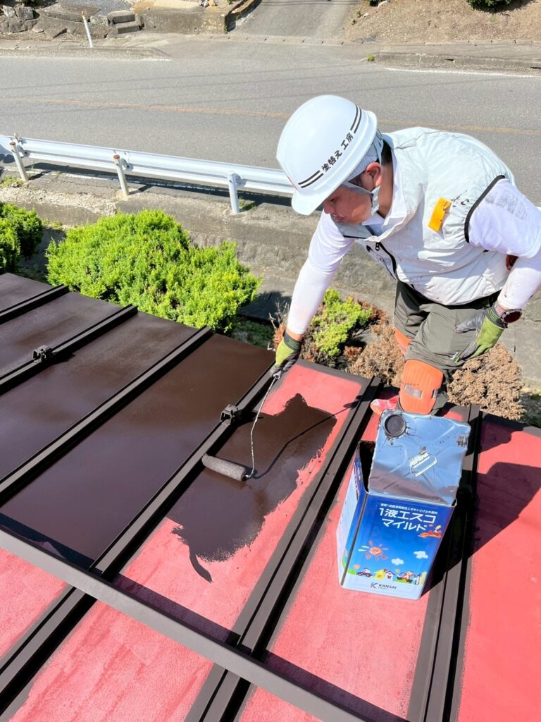昨日は倉庫屋根の下塗り、本日は平屋の母屋屋根下塗り作業となります✨