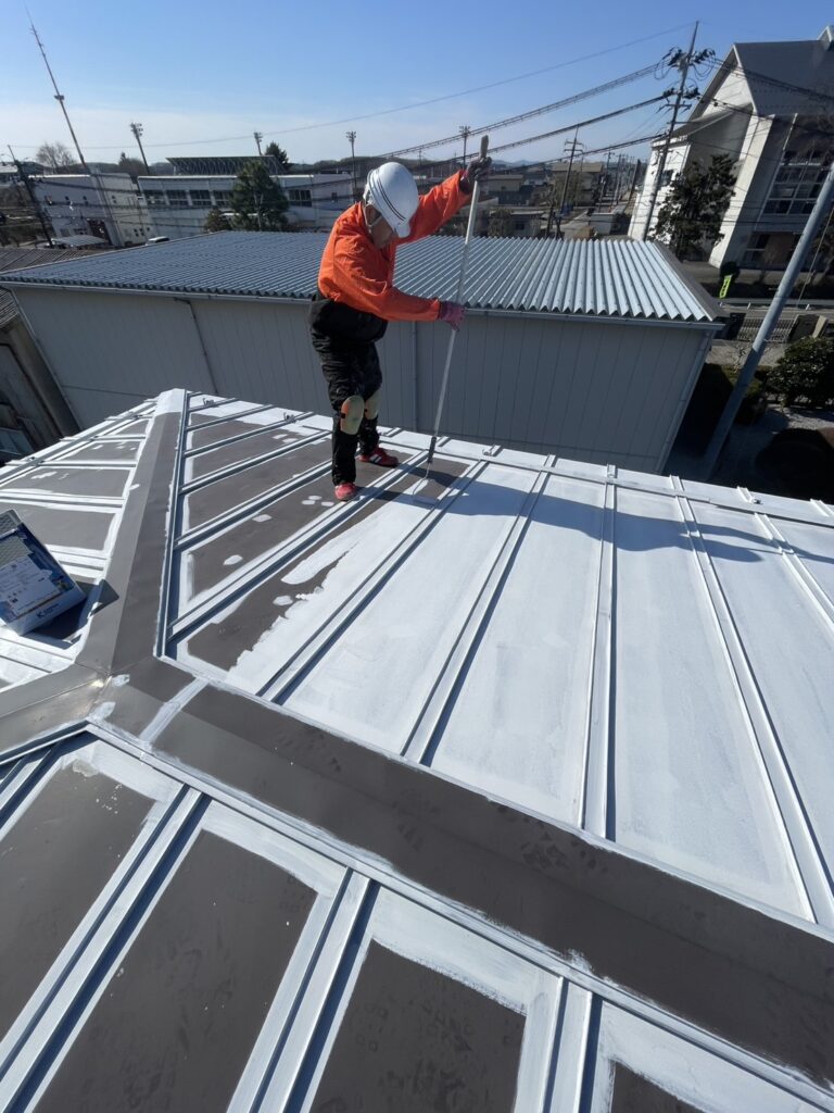 屋根下塗り作業