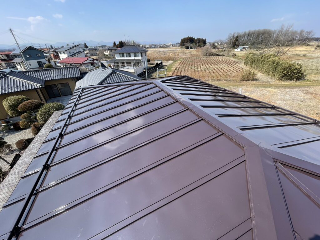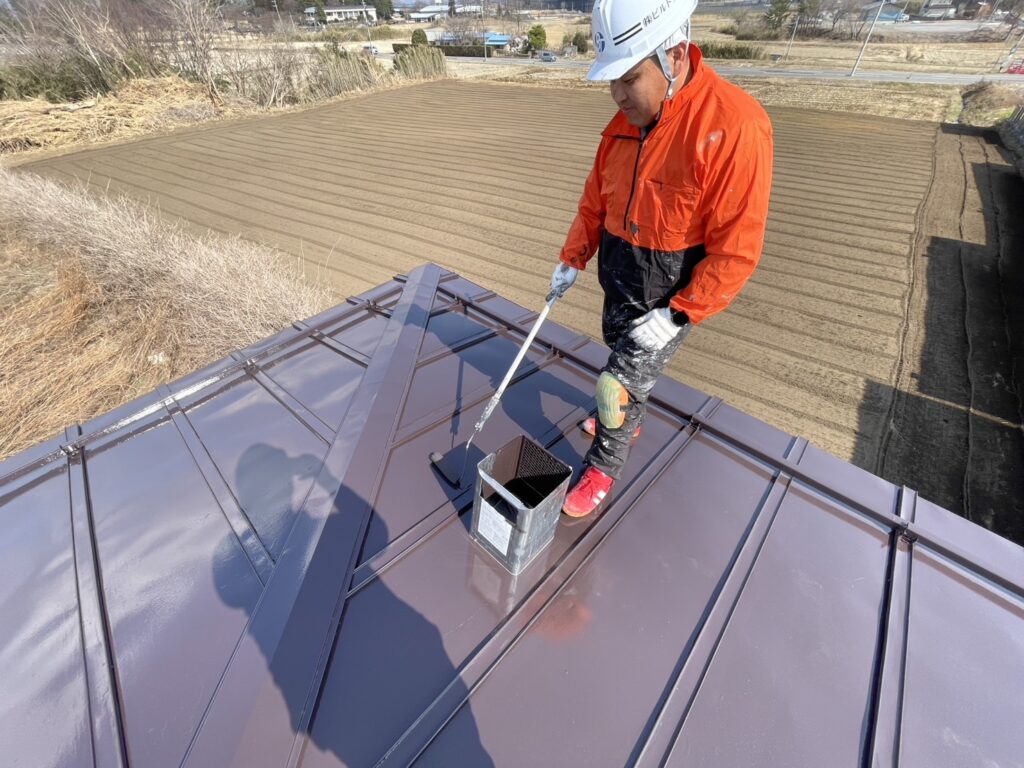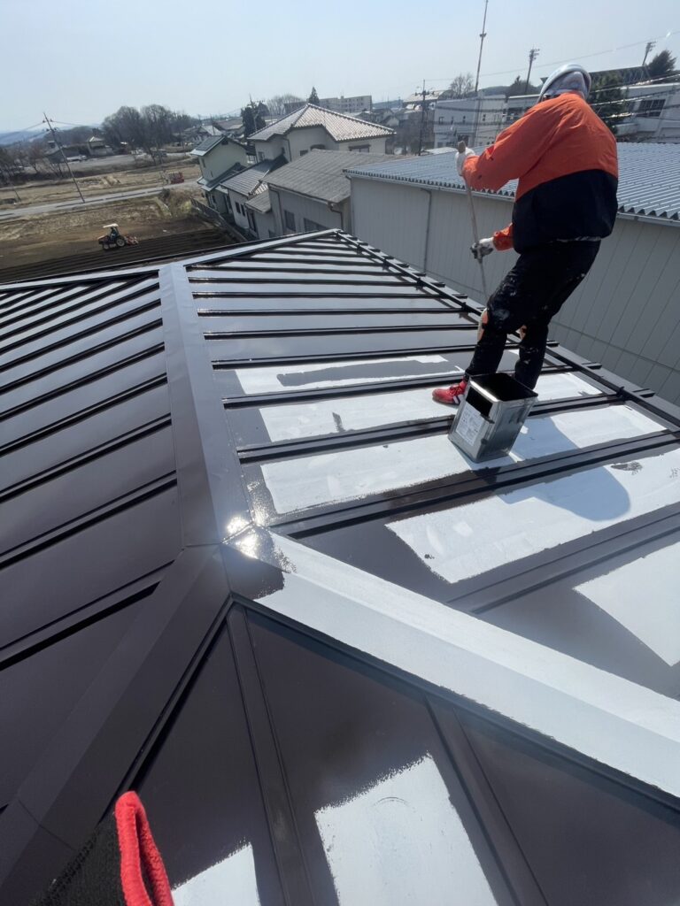 現場親方ブログ2025.03.22本日の現場作業報告!!本日は鏡石町にありますS様邸の屋根塗装の作業風景。須賀川市鉄工所さんでの鉄骨塗装になります。塗装工事施工前写真昨日の施工後の写真になります。(下写真2枚)屋根上塗り作業前回同様関西ペイントのダイナミックルーフ(コーヒーブラウン色)細かい所はハケで塗りローラーを使用し屋根全体を塗布いたしました。(下写真)鉄骨塗装工事(上塗り)本日は部材に鉄工所さん指定材料の上塗りをしました。(下写真)明日も『一所懸命』をモットーに作業頑張りましょう!!無料お見積はこちら