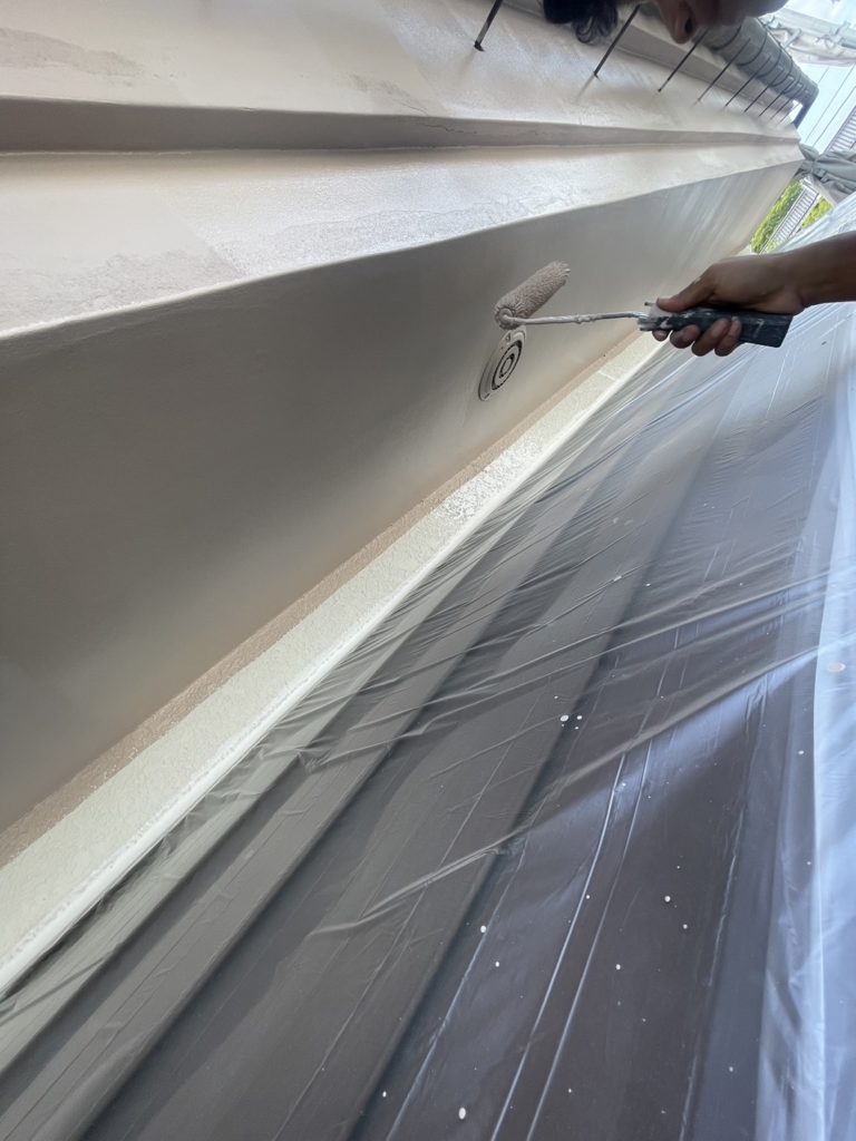 仕上げ塗り一回目同様細かい箇所につきましては刷毛を使用し塗りムラが無いように施工しました。(下写真2枚)