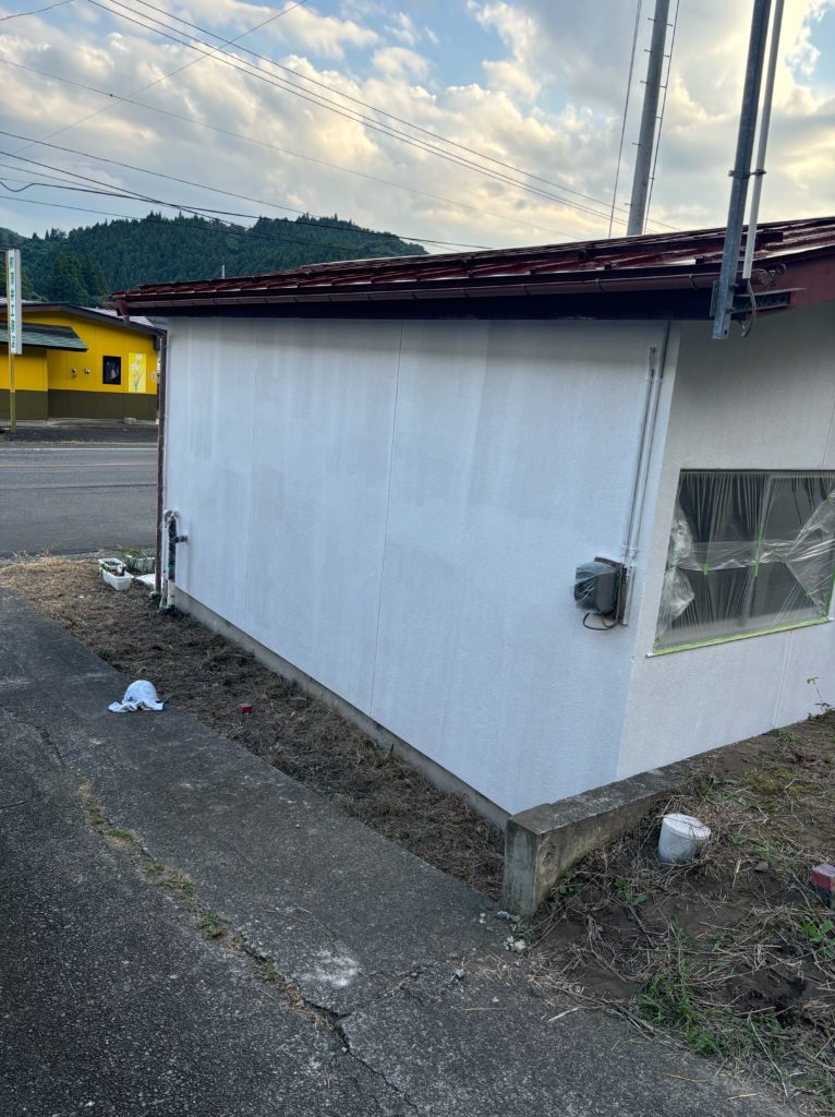 本日は、大信村消防屯所屋根仕上げ塗り作業、外壁下塗り~中塗り作業、付帯部(破風・雨樋)中塗り作業と、郡山市笹川邸の外壁下地補修の作業風景になります。