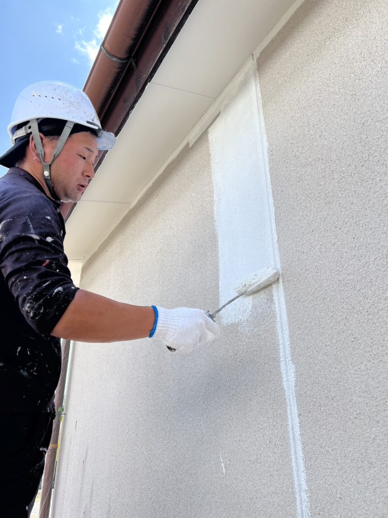 下塗り後、日本ペイントのパーフェクトトップND-370(カタログ色)を中塗りに塗布いたしました。
