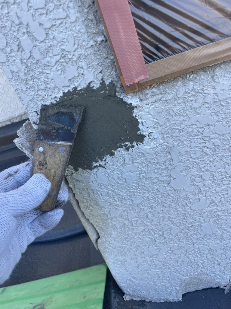 高圧洗浄後、外壁(リシン壁)に日本ペイントのパーフェクトフィーラーを塗布いたしました。
