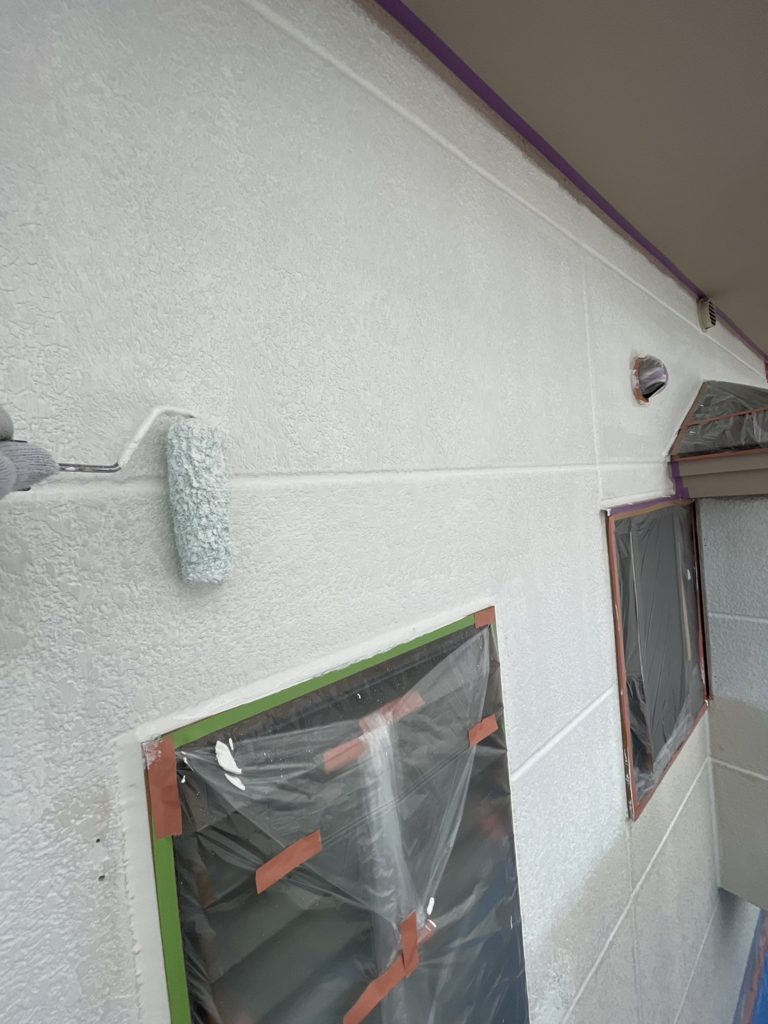 郡山笹川邸本日の作業完了です。2階部分外壁下塗り作業を本日は施工いたしました。