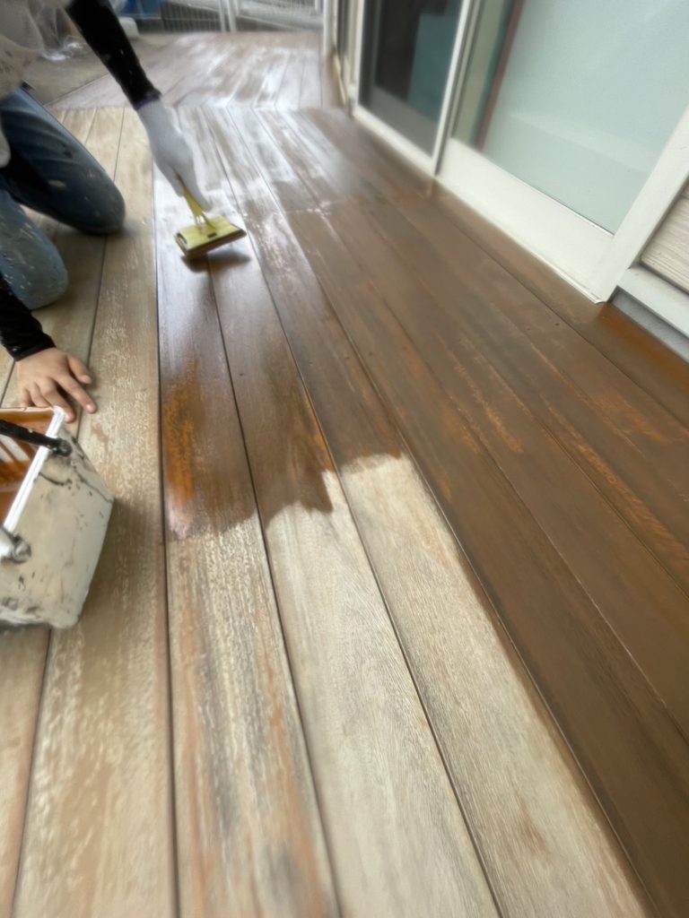 新しく塗り直したウッドデッキで楽しいenjoyライフを楽しんでいただけたらと思います。