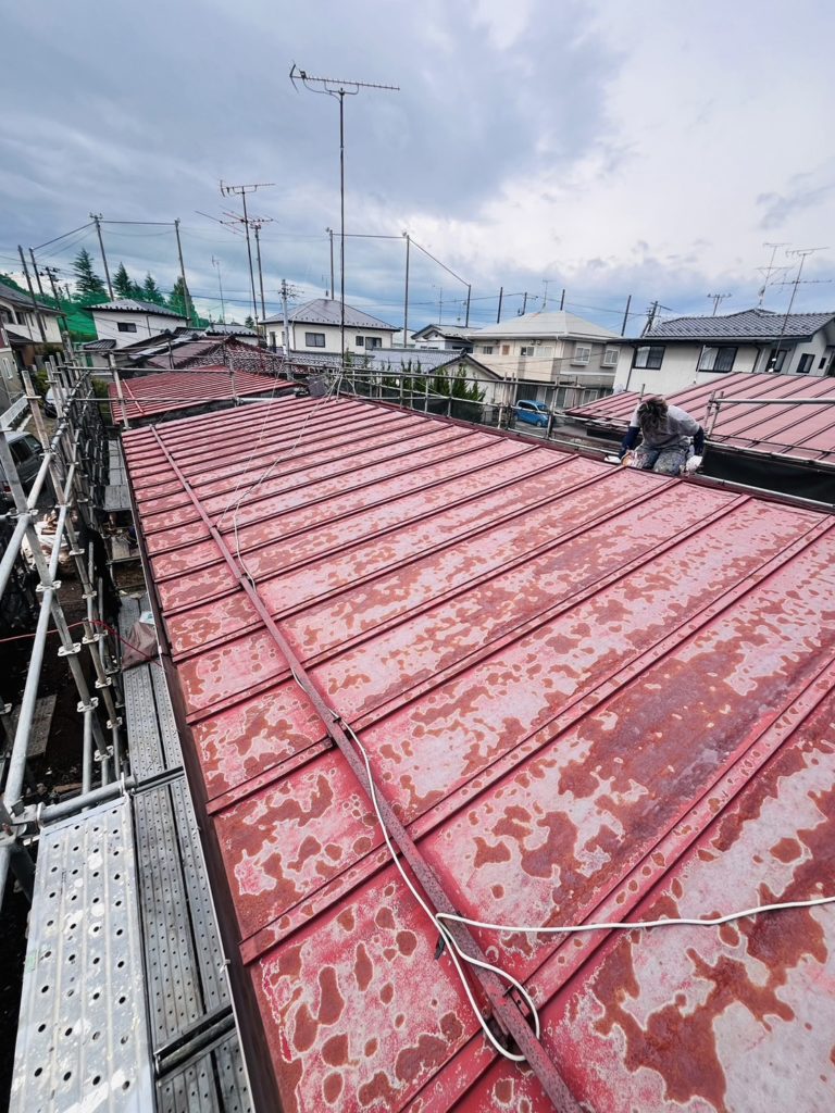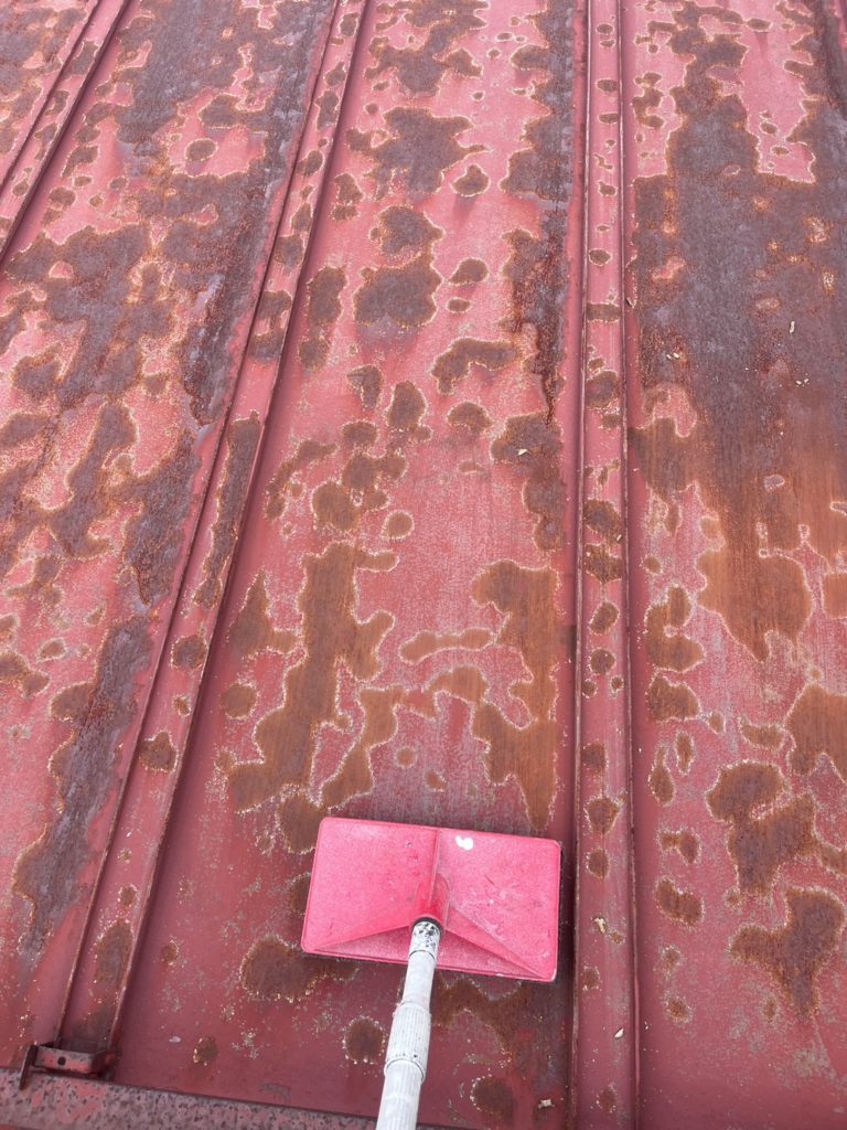 さびの状態がひどく、高圧洗浄の前にサントレールで屋根全体のさびを落としました。(下写真)