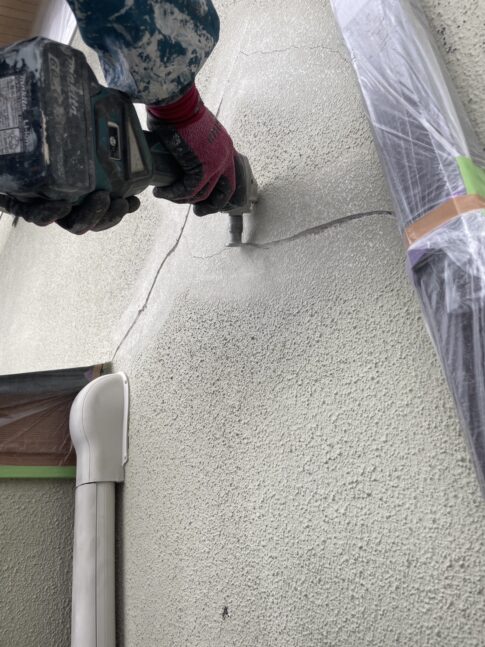 現場親方ブログ【今日の現場作業】外壁のひび割れ補修!Vカット&コーキング処理 こんにちは、百年塗装店(旧:塗替え工房)の塩澤です😊今日は外壁のクラック(ひび割れ)補修を行いました! まずは、ひび割れ部分を専用の電動工具で**「Vカット...